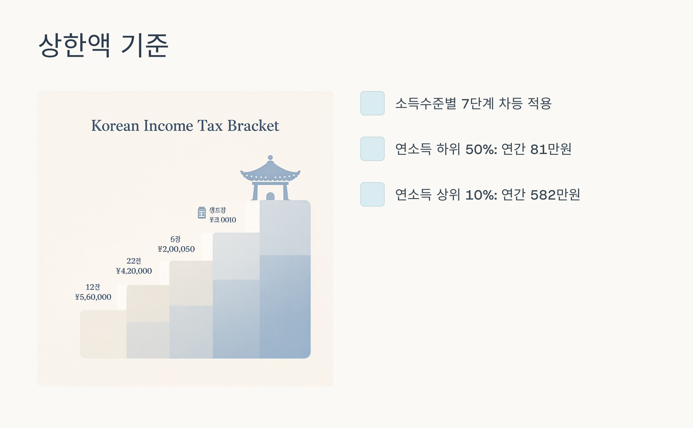 | 하위 10% | 80만원 | 80만원 | 연간 건강보험 본인부담금 합산액 |