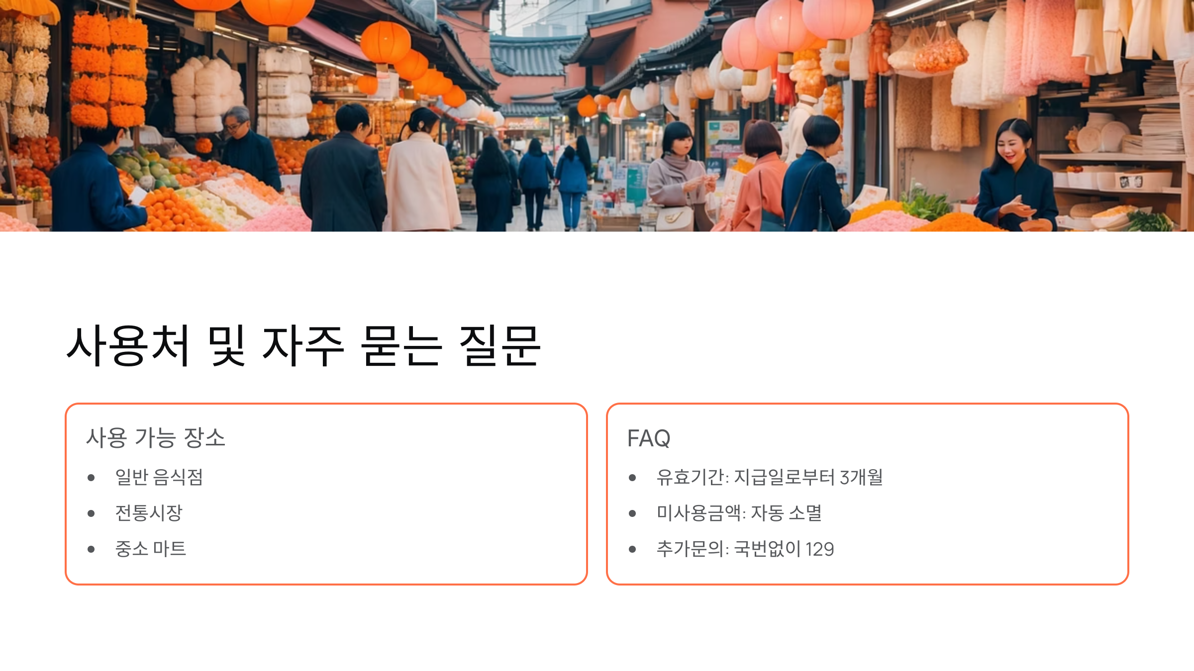 사용 가능한 업종은 지자체마다 다소 차이가 있을 수 있으므로, 거주 지역의 공식 안내를 확인하는 것이 중요합니다. 사용 기한이 정해져 있을 수 있으니, 기간 내에 모두 사용하는 것이 좋습니다.
