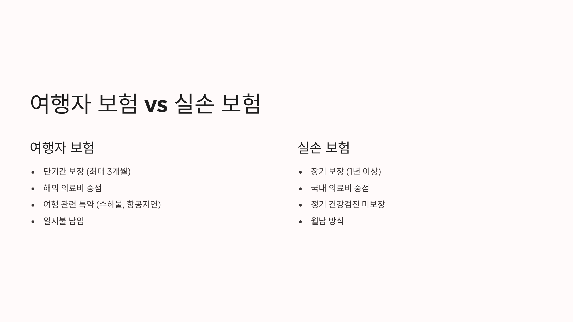 3. 여행자 보험과 실손 보험의 핵심 차이점 🆚