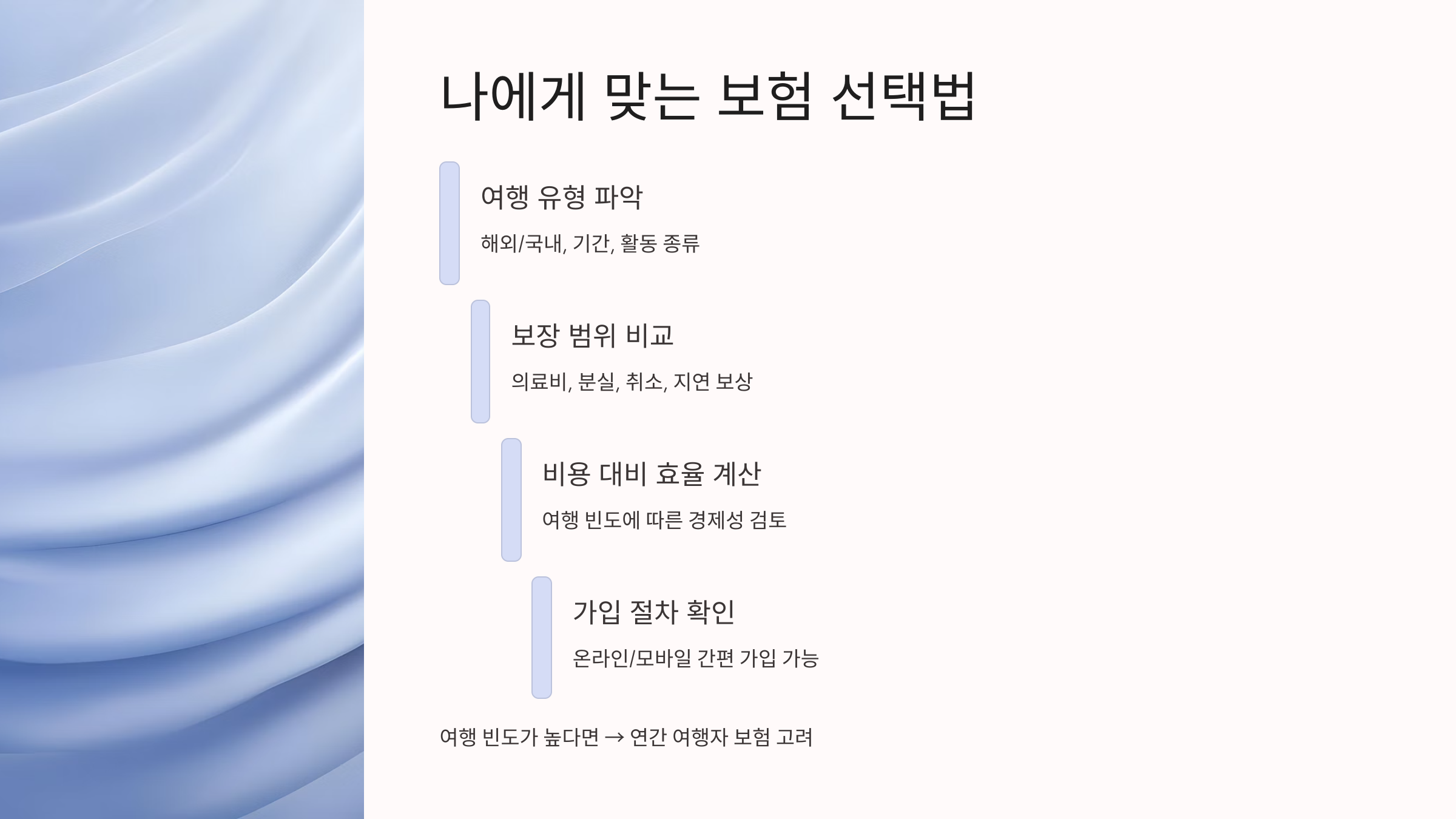 여행자 보험과 실손 보험의 차이를 이해했다면, 이제 자신의 여행 계획과 상황에 맞춰 어떤 보험을 선택하거나 보완할지 결정할 차례입니다.