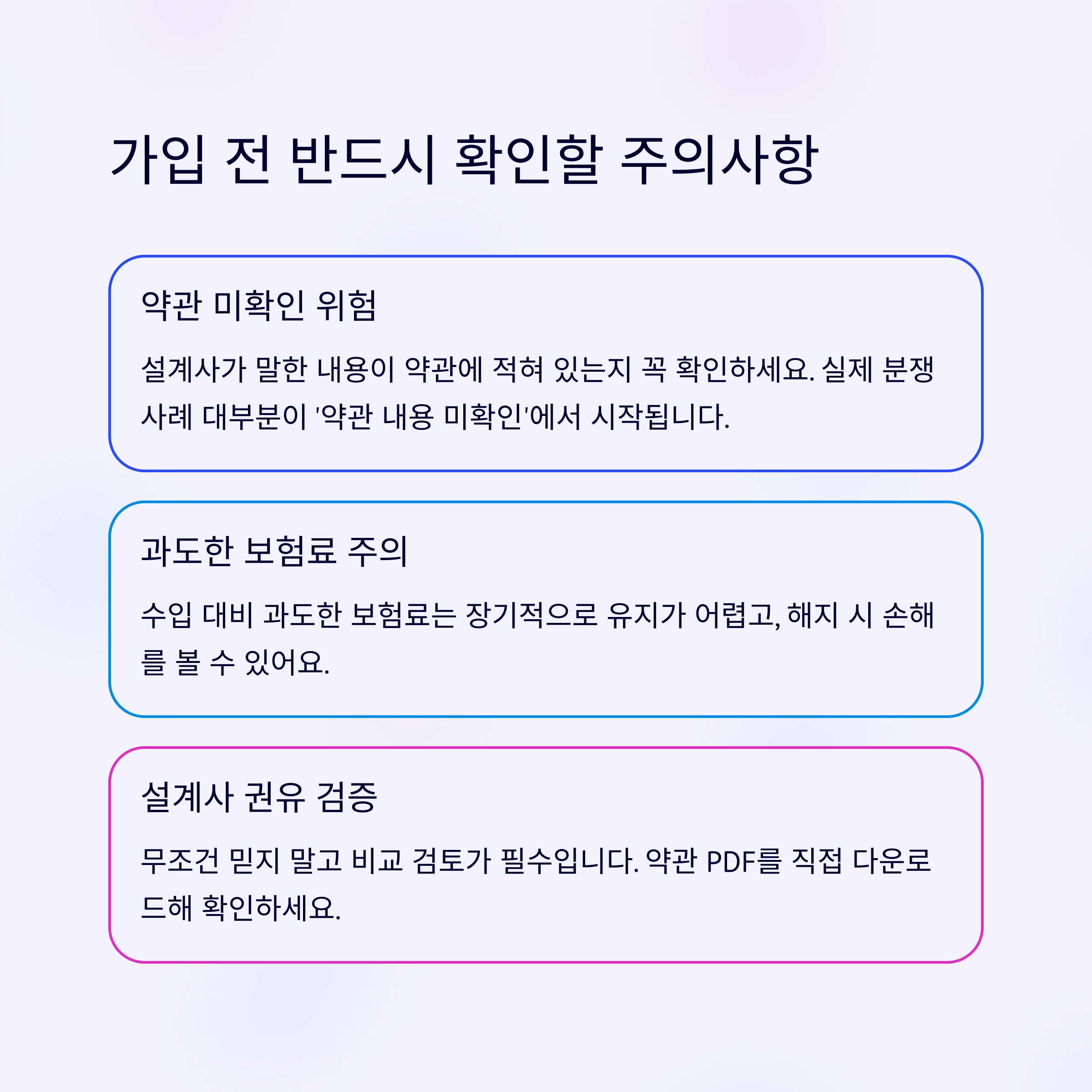 | 설계사 권유 | 무조건 믿지 말고 비교 필수 |