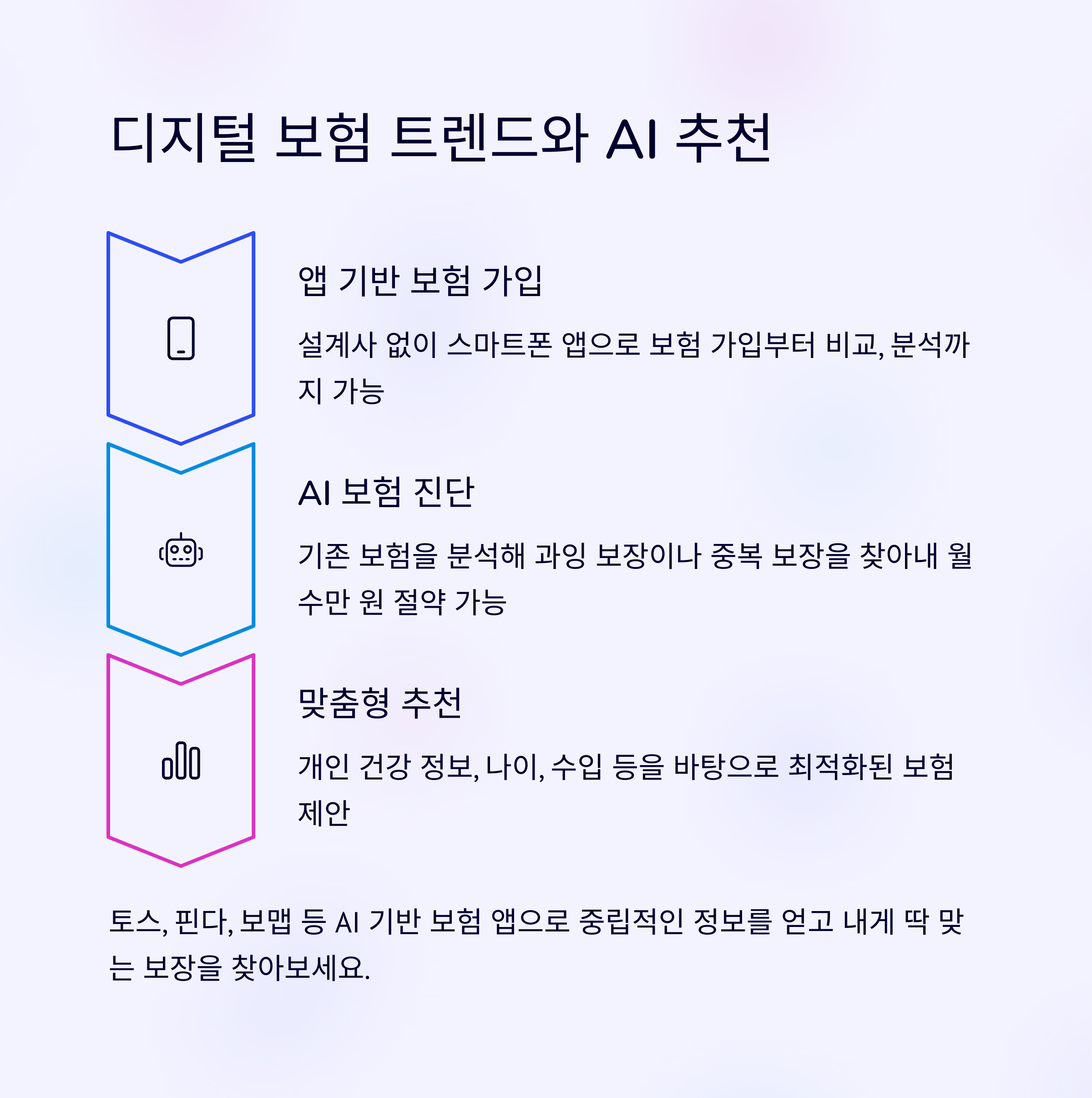 2025년 보험 시장은 디지털화가 빠르게 진행되고 있어요. 이제는 설계사 없이도 스마트폰 앱 하나만으로 보험 가입부터 비교, 분석까지 가능한 시대가 되었답니다. 특히 MZ세대는 앱을 통해 본인에게 최적화된 보험을 AI로 추천받는 걸 선호해요.